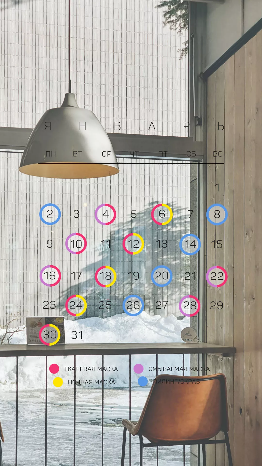 • розовый цвет — тканевая маска (1-3 раза в неделю)
